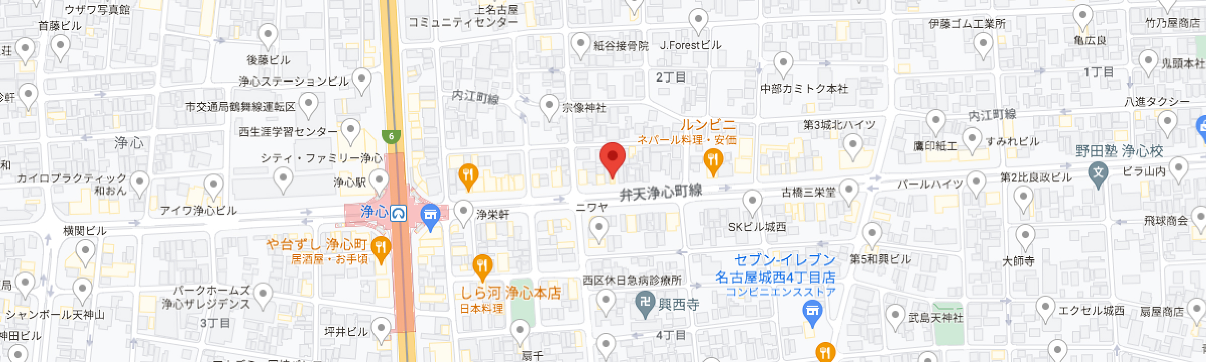地下鉄鶴舞線浄心駅1番出口より徒歩約5分